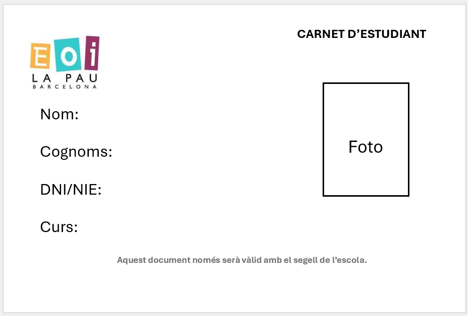 Tu mateix et pots fer el carnet d’estudiant de la nostra escola.