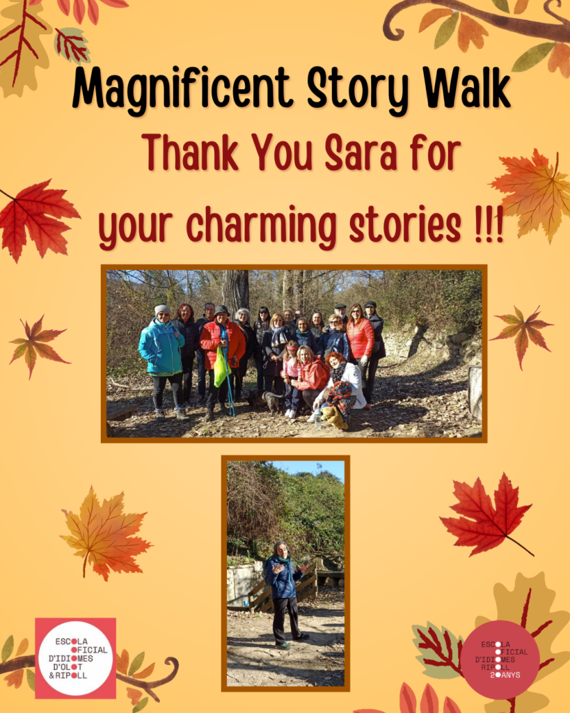 “Dissabte 23 de novembre vam tenir el goig de caminar pel paisatge espectacular de Campdevànol durant un parell d’hores. Vam acompanyar la caminada de meravelloses històries explicades deliciosament per la narradora de contes escocesa Sara Carline. Gràcies Sara i gràcies a tots/es els que us vau engrescar a caminar i a gaudir del paisatge i de les fascinants llegendes escoceses !!!”