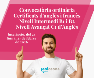 Certificat intermedi de B2 d’anglès de la convocatòria del mes de febrer que es farà a l’EOI Osona. Enllaç al Departament d’Educació Teniu més informació dels candidats lliures al nostre web.