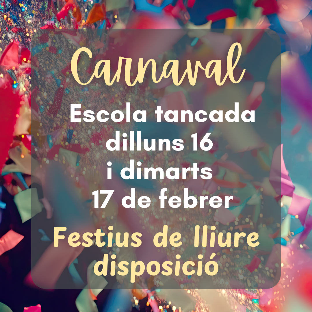 El dilluns 16 i el dimarts 17 de febrer l’escola estarà tancada perquè són dies festius de lliure disposició.