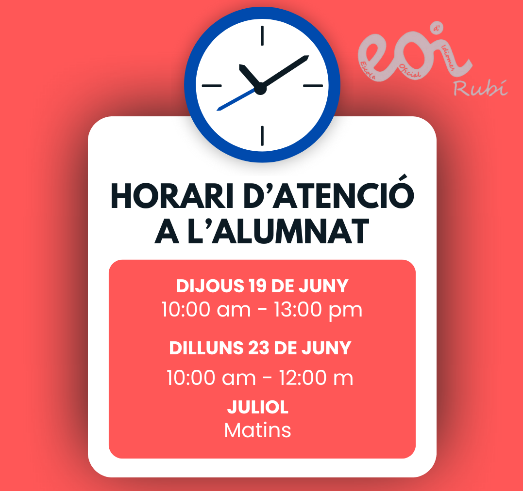 Horari atenció alumnat juny