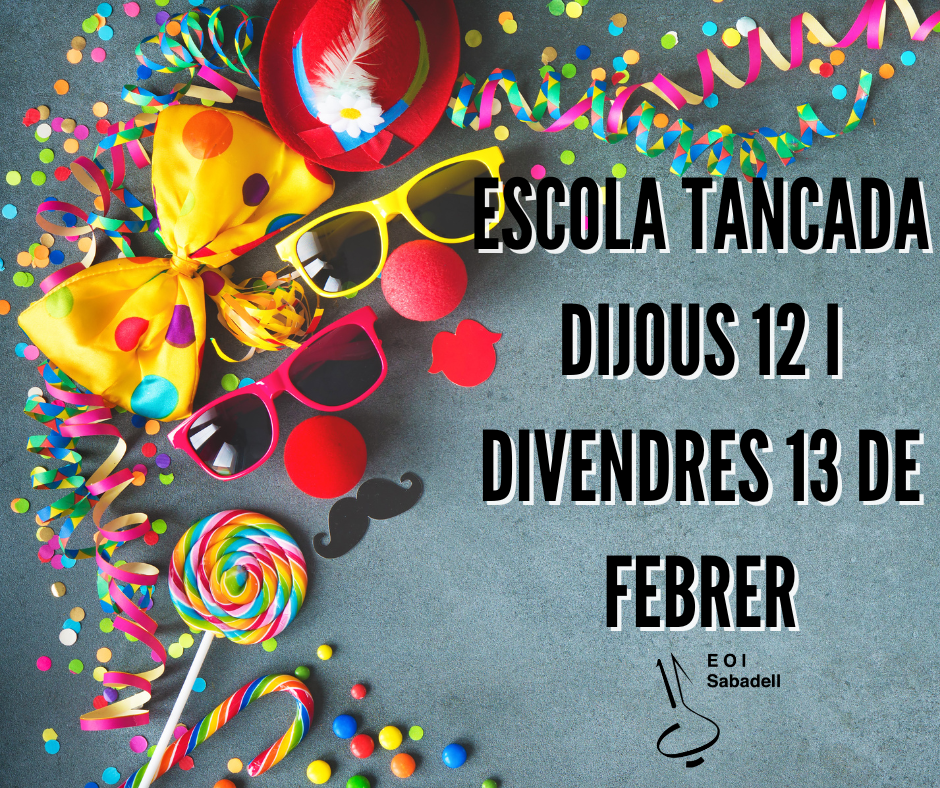 ATENCIÓ: Convocatòria per a l’alumnat lliure. L’alumnat amb matrícula als cursos oficials ja té dret a l’examen amb la matrícula i no cal que faci res. Els alumnes dels cursos oficials, de qualsevol… Llegeix més»