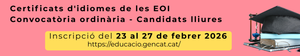 Calendari de publicació de qualificacions Període i procediment de revisió d’examen Les reclamacions s’atendran al centre amb el professorat corresponent en els següents horaris: ⚠️ IMPORTANT Per demanar la revisió d’un examen cal reservar cita prèvia enviant un correu electrònic a: dptangles@eoiterrassa.cat Consulta de qualificacions Podeu accedir a les vostres qualificacions a través del següent […]