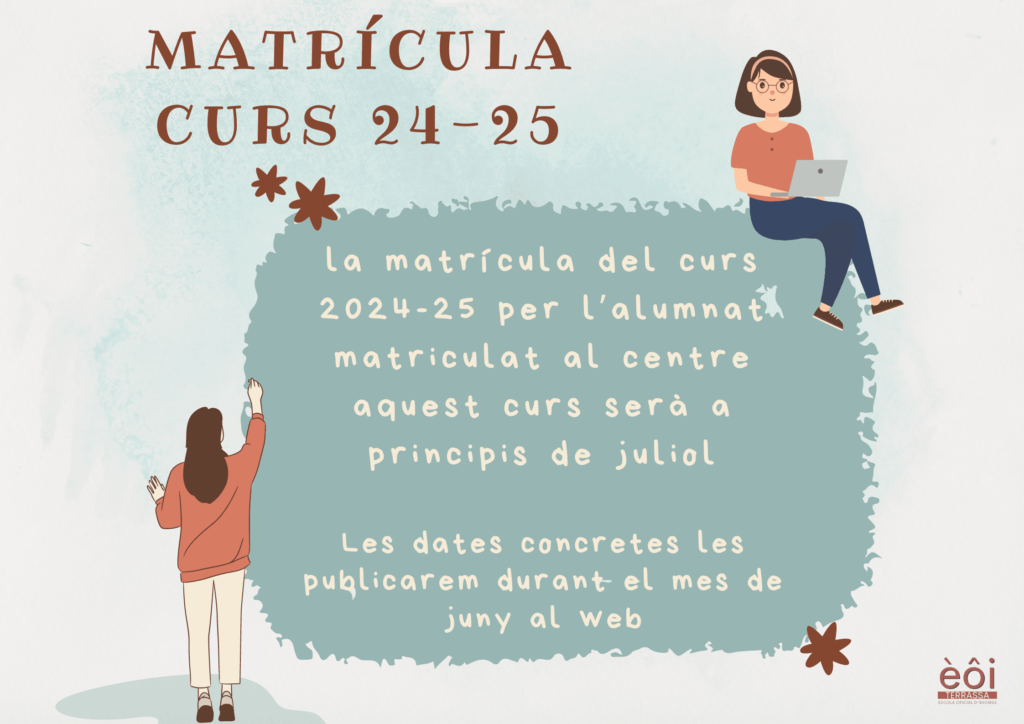 Per tenir tota la informació sobre l’inici de curs a l’EOI de Terrassa, clica AQUÍ.