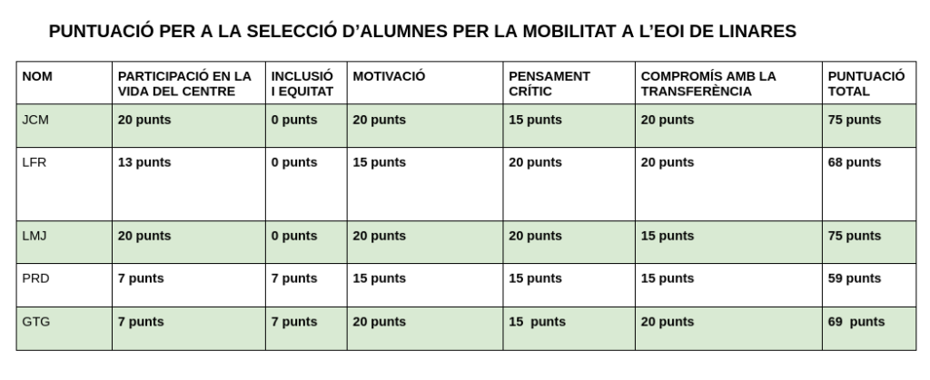 Hi va haver cinc alumnes que van presentar la sol·licitud per a participar en la visita a l’EOI Linares en el marc del projecte “Sinergies per a un aprenentatge inclusiu i sostenible a les escoles oficials d’idiomes de Linares, Lugo i Terrassa”.