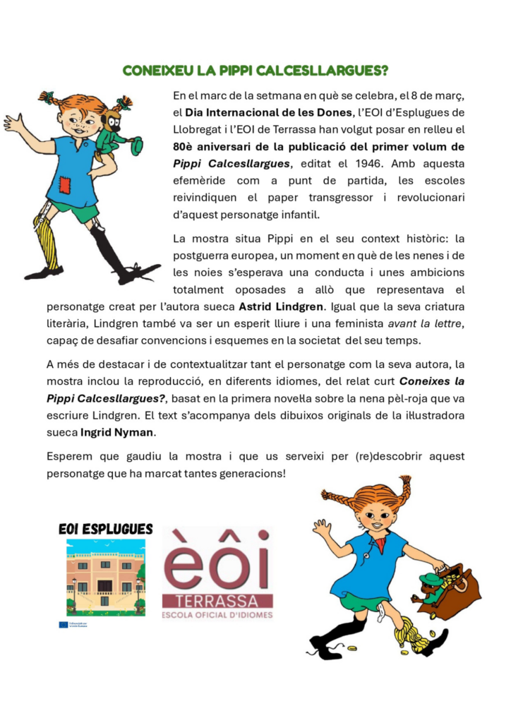 Exposició – 80è aniversari de la publicació del primer volum de Pippi CalcesllarguesPer admin / 06/03/2026 / Portada