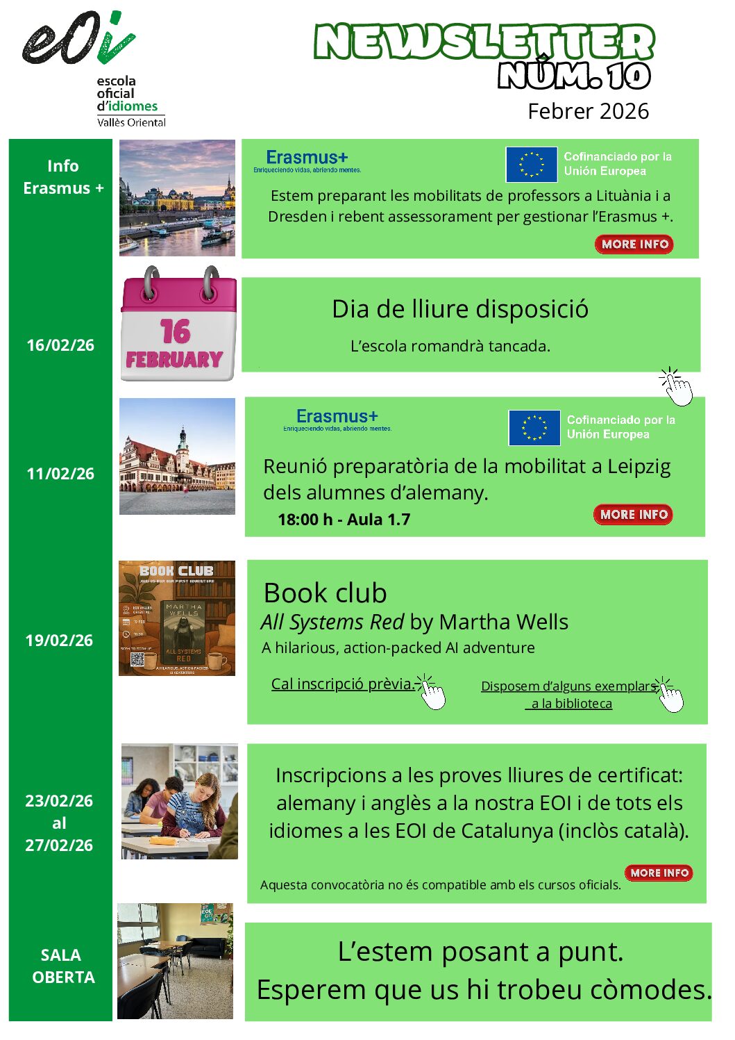 Clica en els enllaços següents: Convocatòria extraordinària d’anglès. 30 de gener. Publicació resultats: dilluns 16 de febrer. Convocatòria ordinària de tots els idiomes. Maig i Juny. Inscripcions del 23 al 27 de febrer.